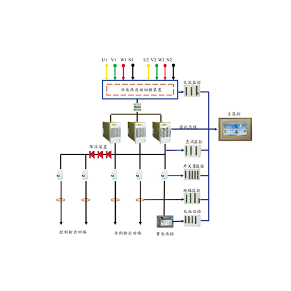 (4)絕緣監(jiān)控:監(jiān)測母線和各輸出回路的絕緣情況